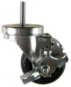 3" x 1-1/4" NEOPRENE RUBBER WHEEL SWIVEL CASTER WITH 3/8" THREADED STEM AND BRAKE - Part #: Q523038NEOTLB