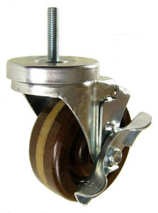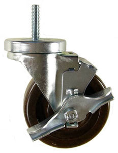 4" x 1-1/4" HIGH TEMP PHENOLIC WHEEL SWIVEL CASTER WITH 3/8" THREADED STEM AND BRAKE - Part #: Q524038HEATTLB-PH