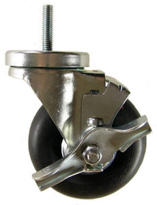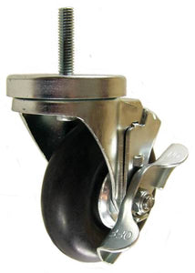 4" x 1-1/4" NEOPRENE RUBBER WHEEL SWIVEL CASTER WITH 3/8" THREADED STEM AND BRAKE - Part #: Q524038NEOTLB