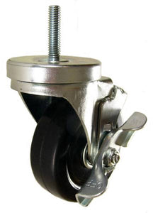 4" x 1-1/4" SOFT RUBBER WHEEL BALL BEARINGS SWIVEL CASTER WITH 3/8" THREADED STEM AND BRAKE - Part #: Q524038SRBTLB