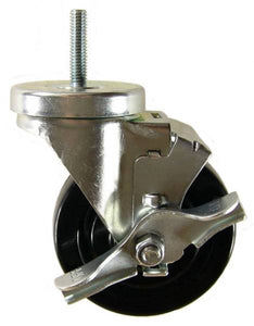 4" x 1-1/4" SOFT RUBBER WHEEL SWIVEL CASTER WITH 3/8" THREADED STEM AND BRAKE - Part #: Q524038SRTLB