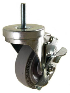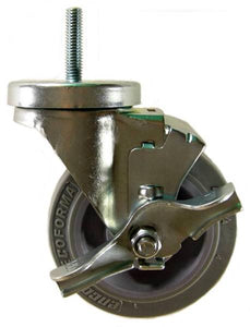 4" x 1-1/4" THERMOPLASTIC RUBBER WHEEL SWIVEL CASTER WITH 3/8" THREADED STEM AND BRAKE - Part #: Q524038MIRTLB