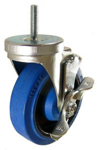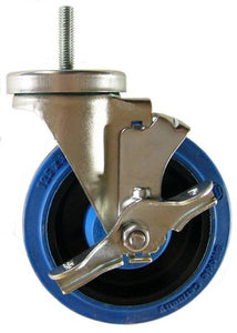 5" x 1-1/4" ELASTIC RUBBER (BALL BEARINGS) WHEEL SWIVEL CASTER WITH 3/8" THREADED STEM AND BRAKE - Part #: Q525038ERKTLB