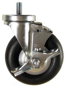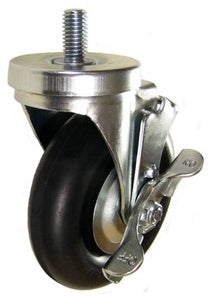 5" x 1-1/4" NEOPRENE RUBBER WHEEL SWIVEL CASTER WITH 1/2" THREADED STEM AND BRAKE - Part #: Q525021NEOTLB