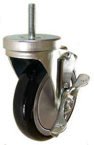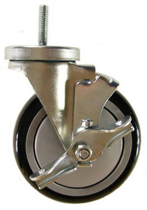 5" x 1-1/4" POLYURETHANE WHEEL SWIVEL CASTER WITH 3/8" THREADED STEM AND BRAKE - Part #: Q525038PLYTLB