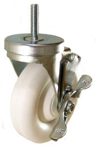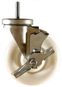 Retort Wheels are hard plastic and most often used in food facilities, such as meat packing plants, because their white color easily shows whether the wheel is clean or not. The wheels is made out of heavy duty plastic and are designed to not crack or chip. These wheels are lightweight yet hold high weight capacities and are also non-marking. They also are washable, steam cleanable, impervious to water, and highly resistant to solvents, oils, grease, most chemicals, and cleaning solutions. These wheels are similar to polyolefin and nylon wheels but offer a higher temperature rating.