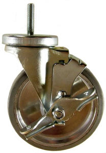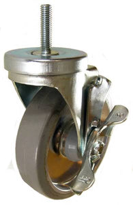 5" x 1-1/4" RUBBER ON ALUMINUM WHEEL SWIVEL CASTER WITH 3/8" THREADED STEM AND BRAKE - Part #: Q525038RALTLB