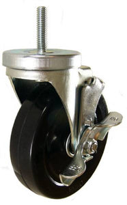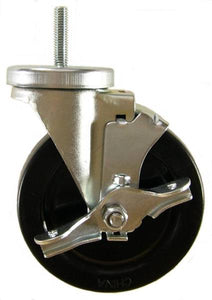 5" x 1-1/4" SOFT RUBBER WHEEL (BALL BEARINGS) SWIVEL CASTER WITH 3/8" THREADED STEM AND BRAKE - Part #: Q525038SRBTLB