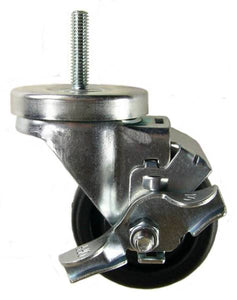 3" x 1-1/4" HEAVY DUTY PLASTIC WHEEL SWIVEL CASTER WITH 3/8" THREADED STEM AND BRAKE - Part #: Q523038HDPTLB