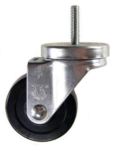 3" x 1-1/4" HARD RUBBER WHEEL SWIVEL CASTER WITH 3/8" THREADED STEM - Part #: Q523038HR